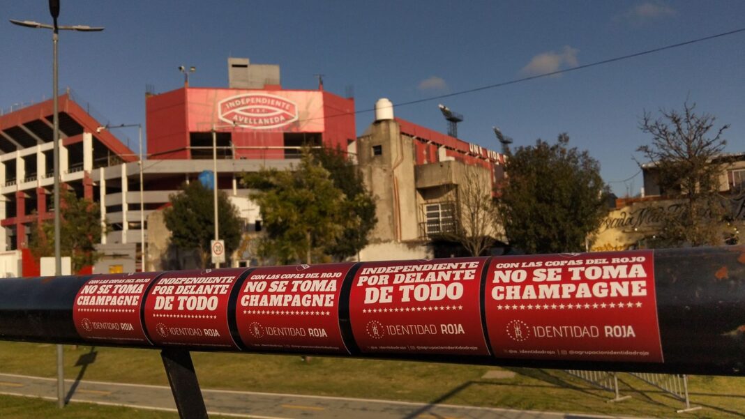 Los afiches fueron colocados en las inmediaciones del estadio Estadio Libertadores de América – Ricardo Enrique Bochini y en distintos puntos de la ciudad, llevan los mensajes “Independiente por delante de todo” y “Con las copas del Rojo no se toma champagne”, en clara alusión al actual oficialismo del club.